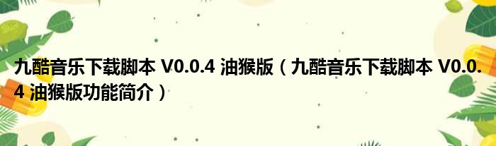 导读 大家好,关于九酷音乐下载脚本 V0 0 4 油猴版,九酷音乐下载脚本 V0 0 4 油猴版功能简介这个很多人还不知道,小勒来为大家解答以上的问题