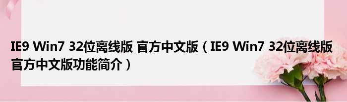 IE9 Win7 32位离线版 官方中文版(IE9 Win7 32位离线版 官方中文版功能简介)