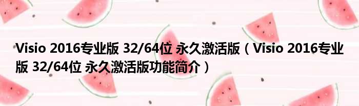 Visio 2016专业版 32/64位 永久激活版(Visio 2016专业版 32/64位 永久激活版功能简介)