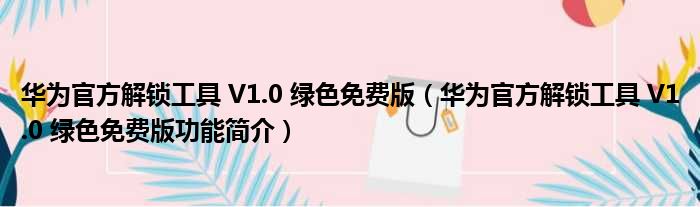 导读 大家好,关于华为官方解锁工具 V1 0 绿色免费版,华为官方解锁工具 V1 0 绿色免费版功能简介这个很多人还不知道,小勒来为大家解答以上的