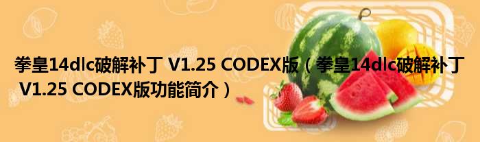 拳皇14dlc破解补丁 V1.25 CODEX版(拳皇14dlc破解补丁 V1.25 CODEX版功能简介)