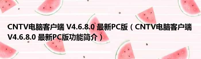 CNTV电脑客户端 V4.6.8.0 最新PC版(CNTV电脑客户端 V4.6.8.0 最新PC版功能简介)