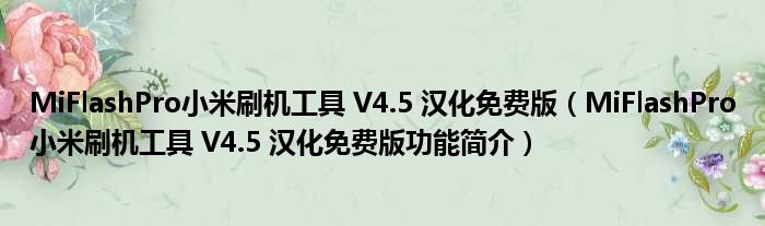 导读 大家好,关于MiFlashPro小米刷机工具 V4 5 汉化免费版,MiFlashPro小米刷机工具 V4 5 汉化免费版功能简介这个很多人还不知道,小勒来为大