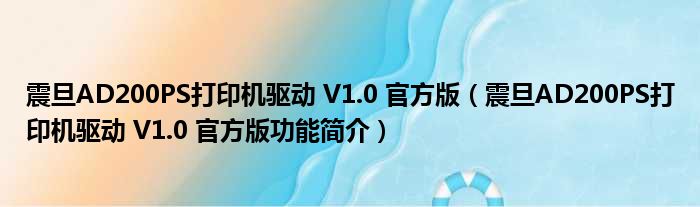 震旦AD200PS打印机驱动 V1.0 官方版(震旦AD200PS打印机驱动 V1.0 官方版功能简介)