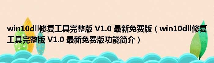 win10dll修复工具完整版 V1.0 最新免费版(win10dll修复工具完整版 V1.0 最新免费版功能简介)