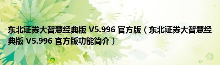 导读 大家好,关于东北证券大智慧经典版 V5 996 官方版,东北证券大智慧经典版 V5 996 官方版功能简介这个很多人还不知道,小勒来为大家解答以