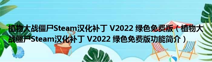 植物大战僵尸Steam汉化补丁 V2022 绿色免费版(植物大战僵尸Steam汉化补丁 V2022 绿色免费版功能简介)