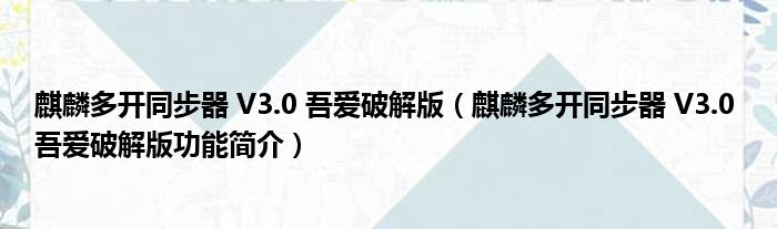 导读 大家好,关于麒麟多开同步器 V3 0 吾爱破解版,麒麟多开同步器 V3 0 吾爱破解版功能简介这个很多人还不知道,小勒来为大家解答以上的问题