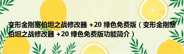 变形金刚塞伯坦之战修改器 +20 绿色免费版(变形金刚塞伯坦之战修改器 +20 绿色免费版功能简介)