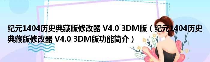 纪元1404历史典藏版修改器 V4.0 3DM版(纪元1404历史典藏版修改器 V4.0 3DM版功能简介)