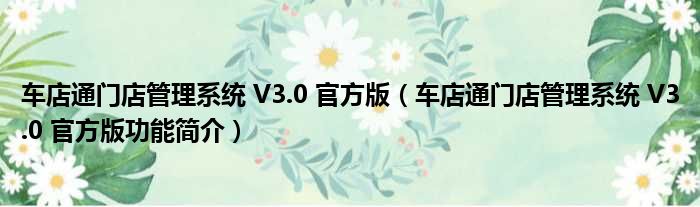 车店通门店管理系统 V3.0 官方版(车店通门店管理系统 V3.0 官方版功能简介)