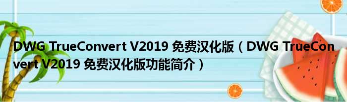 DWG TrueConvert V2019 免费汉化版(DWG TrueConvert V2019 免费汉化版功能简介)