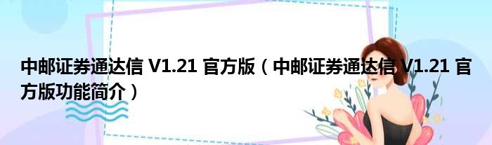 中邮证券通达信 V1.21 官方版(中邮证券通达信 V1.21 官方版功能简介)