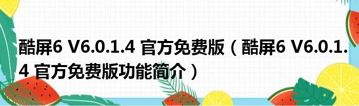 酷屏6 V6.0.1.4 官方免费版(酷屏6 V6.0.1.4 官方免费版功能简介)