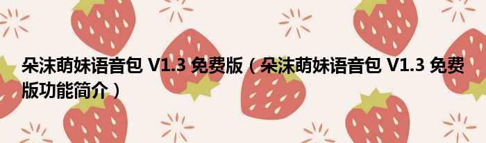 朵沫萌妹语音包 V1.3 免费版(朵沫萌妹语音包 V1.3 免费版功能简介)