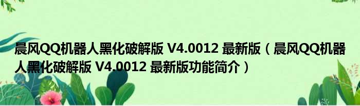 晨风QQ机器人黑化破解版 V4.0012 最新版(晨风QQ机器人黑化破解版 V4.0012 最新版功能简介)