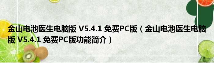 金山电池医生电脑版 V5.4.1 免费PC版(金山电池医生电脑版 V5.4.1 免费PC版功能简介)