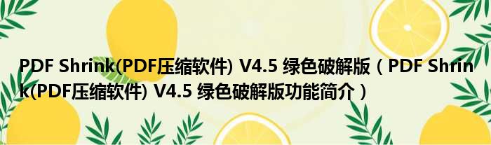 PDF Shrink(PDF压缩软件) V4.5 绿色破解版(PDF Shrink(PDF压缩软件) V4.5 绿色破解版功能简介)