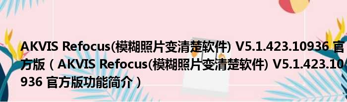 导读 大家好,关于AKVIS Refocus(模糊照片变清楚软件) V5 1 423 10936 官方版,AKVIS Refocus(模糊照片变清楚软件) V5 1 423 10936 官方版