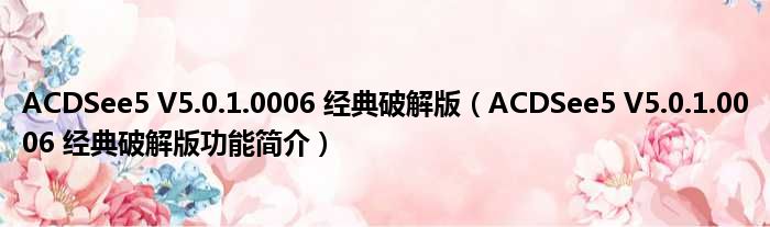 ACDSee5 V5.0.1.0006 经典破解版(ACDSee5 V5.0.1.0006 经典破解版功能简介)