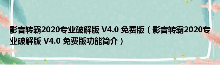影音转霸2020专业破解版 V4.0 免费版(影音转霸2020专业破解版 V4.0 免费版功能简介)