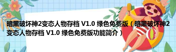 导读 大家好,关于暗黑破坏神2变态人物存档 V1 0 绿色免费版,暗黑破坏神2变态人物存档 V1 0 绿色免费版功能简介这个很多人还不知道,小勒来为