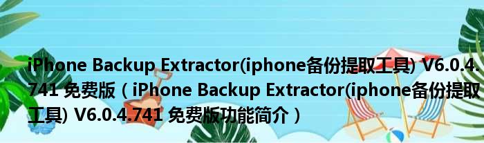 导读 大家好,关于iPhone Backup Extractor(iphone备份提取工具) V6 0 4 741 免费版,iPhone Backup Extractor(iphone备份提取工具) V6 0