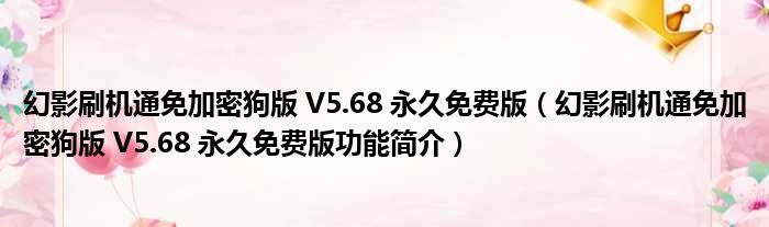 导读 大家好,关于幻影刷机通免加密狗版 V5 68 永久免费版,幻影刷机通免加密狗版 V5 68 永久免费版功能简介这个很多人还不知道,小勒来为大家