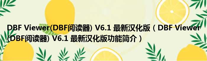 DBF Viewer(DBF阅读器) V6.1 最新汉化版(DBF Viewer(DBF阅读器) V6.1 最新汉化版功能简介)