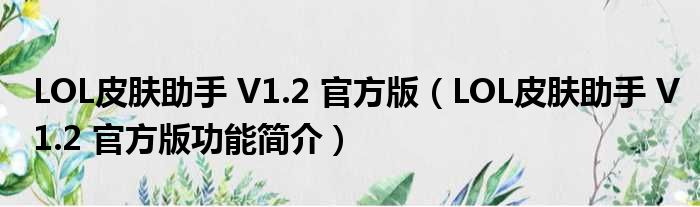 LOL皮肤助手 V1.2 官方版(LOL皮肤助手 V1.2 官方版功能简介)