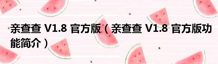 亲查查 V1.8 官方版(亲查查 V1.8 官方版功能简介)
