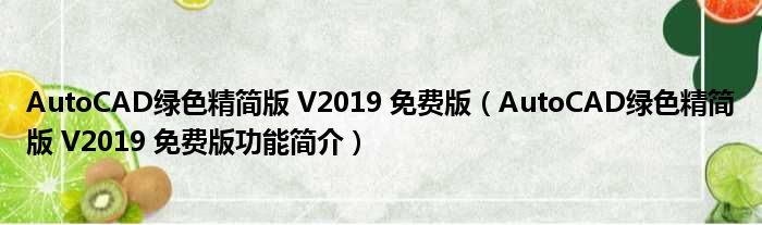AutoCAD绿色精简版 V2019 免费版(AutoCAD绿色精简版 V2019 免费版功能简介)