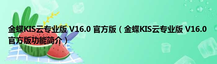 金蝶KIS云专业版 V16.0 官方版(金蝶KIS云专业版 V16.0 官方版功能简介)