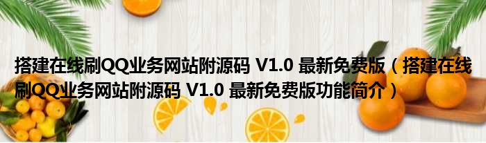搭建在线刷QQ业务网站附源码 V1.0 最新免费版(搭建在线刷QQ业务网站附源码 V1.0 最新免费版功能简介)