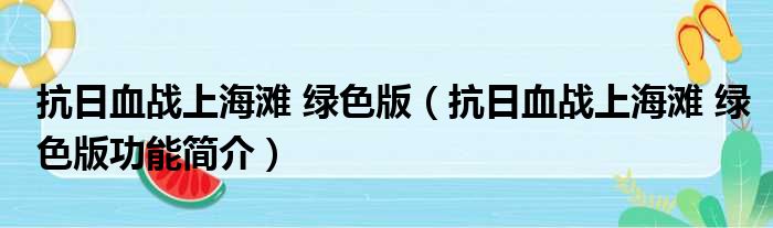 抗日血战上海滩 绿色版(抗日血战上海滩 绿色版功能简介)