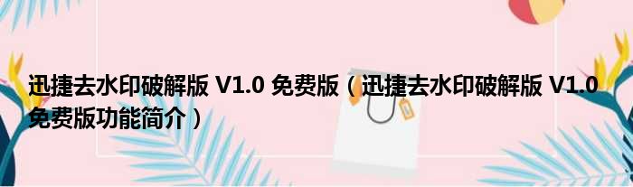 迅捷去水印破解版 V1.0 免费版(迅捷去水印破解版 V1.0 免费版功能简介)