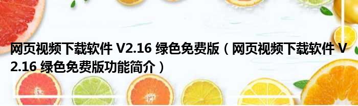 网页视频下载软件 V2.16 绿色免费版(网页视频下载软件 V2.16 绿色免费版功能简介)