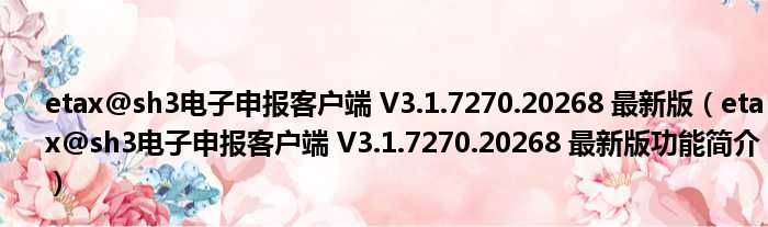 etax@sh3电子申报客户端 V3.1.7270.20268 最新版(etax@sh3电子申报客户端 V3.1.7270.20268 最新版功能简介)