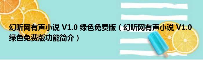 幻听网有声小说 V1.0 绿色免费版(幻听网有声小说 V1.0 绿色免费版功能简介)