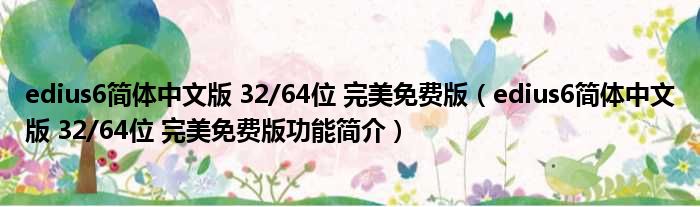 edius6简体中文版 32/64位 完美免费版(edius6简体中文版 32/64位 完美免费版功能简介)