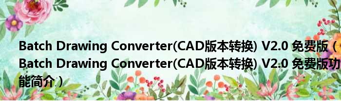 Batch Drawing Converter(CAD版本转换) V2.0 免费版(Batch Drawing Converter(CAD版本转换) V2.0 免费版功能简介)