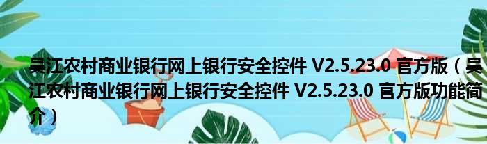吴江农村商业银行网上银行安全控件 V2.5.23.0 官方版(吴江农村商业银行网上银行安全控件 V2.5.23.0 官方版功能简介)