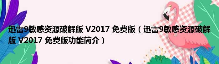 导读 大家好,关于迅雷9敏感资源破解版 V2017 免费版,迅雷9敏感资源破解版 V2017 免费版功能简介这个很多人还不知道,小勒来为大家解答以上的