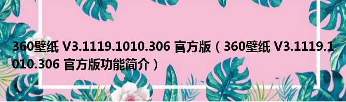 360壁纸 V3.1119.1010.306 官方版(360壁纸 V3.1119.1010.306 官方版功能简介)