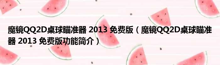 魔镜QQ2D桌球瞄准器 2013 免费版(魔镜QQ2D桌球瞄准器 2013 免费版功能简介)