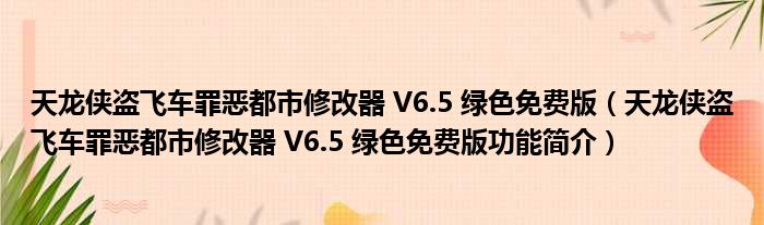 天龙侠盗飞车罪恶都市修改器 V6.5 绿色免费版(天龙侠盗飞车罪恶都市修改器 V6.5 绿色免费版功能简介)