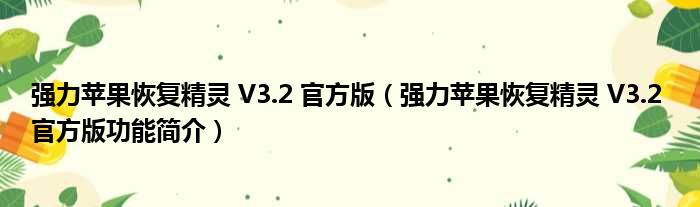强力苹果恢复精灵 V3.2 官方版(强力苹果恢复精灵 V3.2 官方版功能简介)