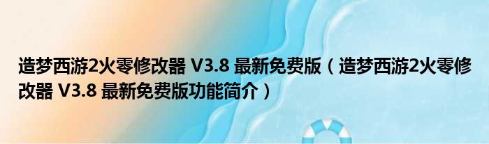 导读 大家好,关于造梦西游2火零修改器 V3 8 最新免费版,造梦西游2火零修改器 V3 8 最新免费版功能简介这个很多人还不知道,小勒来为大家解答