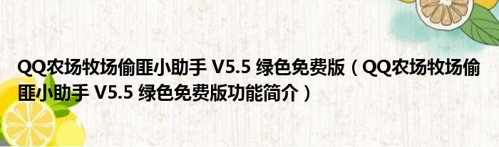 QQ农场牧场偷匪小助手 V5.5 绿色免费版(QQ农场牧场偷匪小助手 V5.5 绿色免费版功能简介)