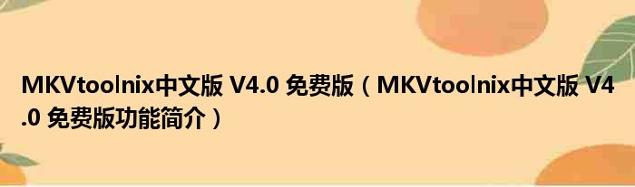 MKVtoolnix中文版 V4.0 免费版(MKVtoolnix中文版 V4.0 免费版功能简介)